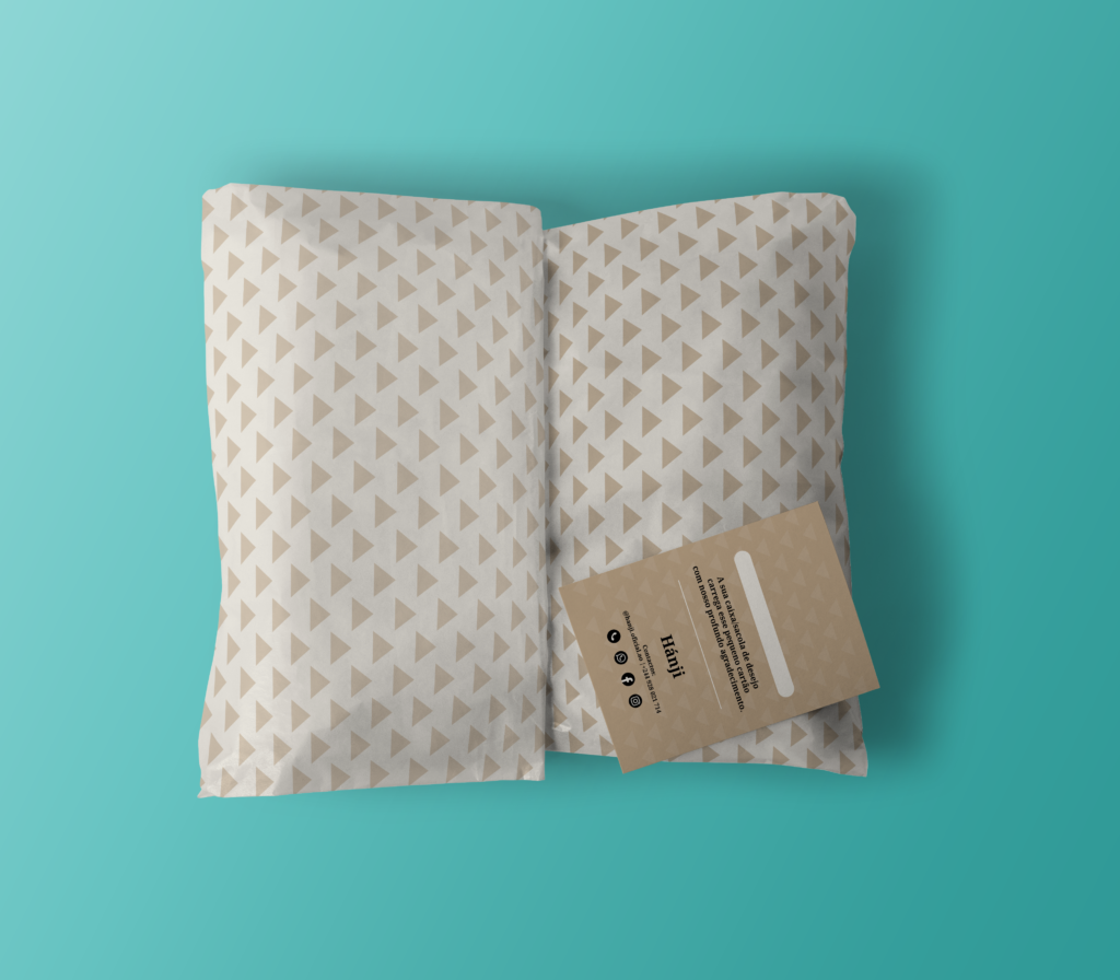 To meet this need, a geometric logo inspired by African visual foundations was developed, accompanied by a supporting graphic pattern. The project included the design of bags, labels, and thank-you cards, consolidating a cohesive and distinctive visual language.